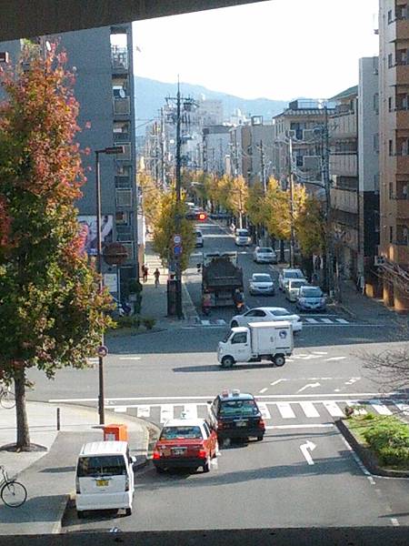 今天算是這次行程最後的一天,因為隔天一睡醒就要到機場搭飛機回台灣,所以吃完早餐之後就把行李拉到京都車站前的旅館とみや辦理入住手續。 JR二条站月台遠望御池通上的銀杏並木。